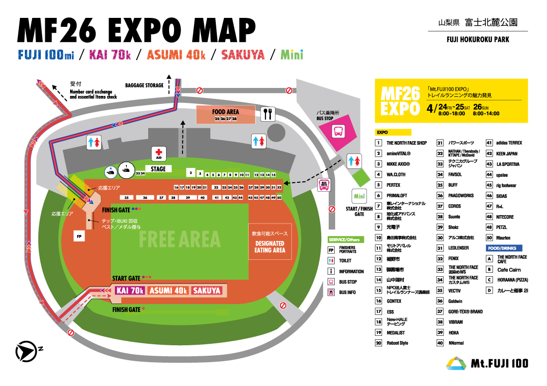 レース開催期間中、メイン会場となる富士北麓公園 富士山の銘水スタジアムでは「Mt.FUJI100 EXPO」をオープンいたします。